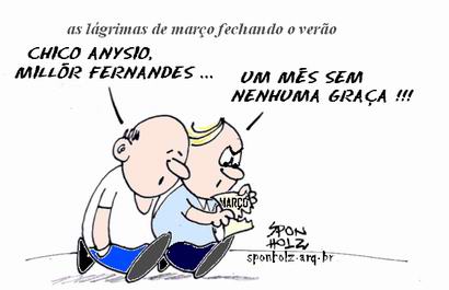 Estamos perdendo essa característica, estamos nos tornando um povo mal-humorado, correndo para lá e pra cá, esbaforidos no trânsito, estressados, com medo permanente de tudo e de todos, com medo do Outro. É por aí que proliferam os extremismos, o fanatismo e o fundamentalismo. Nessas áreas escuras da vida social, onde o riso é suprimido, é que vicejam os germes do totalitarismo e do fascismo. Que S.Francisco Anísio e S.Millôr orem por nós e nos protejam.