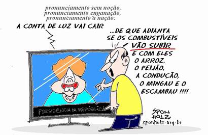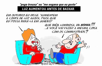 Dilma anunciou que o preço da energia elétrica vai baixar. Parabéns pela mágica! Quem não quer pagar menos pela energia elétrica ou por qualquer dos serviços prestados pelo Estado à sociedade? A questão é que dar com uma mão e tirar com a outra é mentira, é estelionato político.