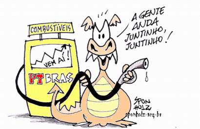 Depois que o PT devastou a Petrobrás, inclusive fazendo-a comprar uma usina velha e sucateada, nos Estados Unidos, por um preço dez vezes maior do que ela valia, temos mesmo é que pagar mais caro pelos derivados do petróleo, senão a Petrobrás quebra! Afinal somos, ou não somos, autossuficientes? Temos, ou não temos, o pré-sal? Por enquanto vamos nos contentando só com o sal, o valor salgado da conta de encher o tanque.
