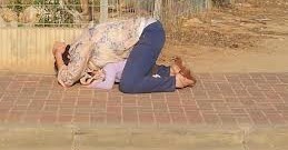 A foto acima é de uma mãe protegendo o filho com seu próprio
