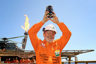 E viva o pré-sal! Aplausos! Maravilha! Vendemos a melhor parte da riqueza do pré-sal a um único ofertante e pelo preço mínimo do leilão. Ou seja, não houve leilão! Não houve disputa porque ninguém mais se interessou. Nem a gigante British Petroleum, nem a ExxonMobil, nem a Chevron, nem mesmo a mexicana Pemex ou a norueguesa Statoil se interessaram. Mesmo assim, Dilma comemorou a formação do "maior consórcio do mundo". Tinha que ser alguma coisa "maior do mundo". Menos que isso não atinge os objetivos marqueteiros e populistas do governo.